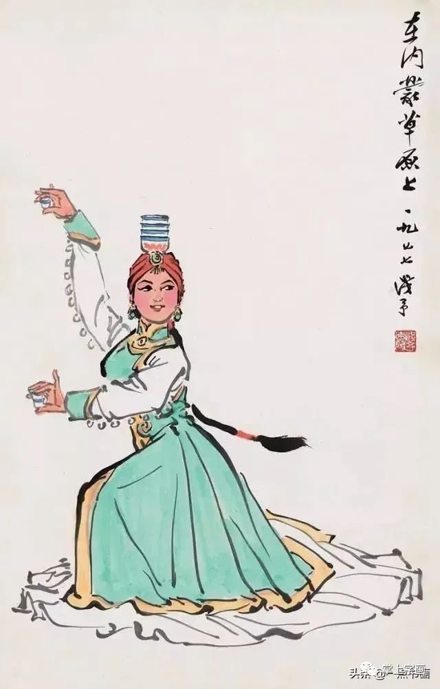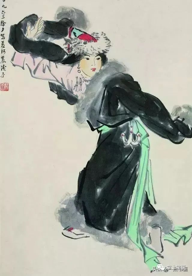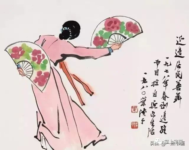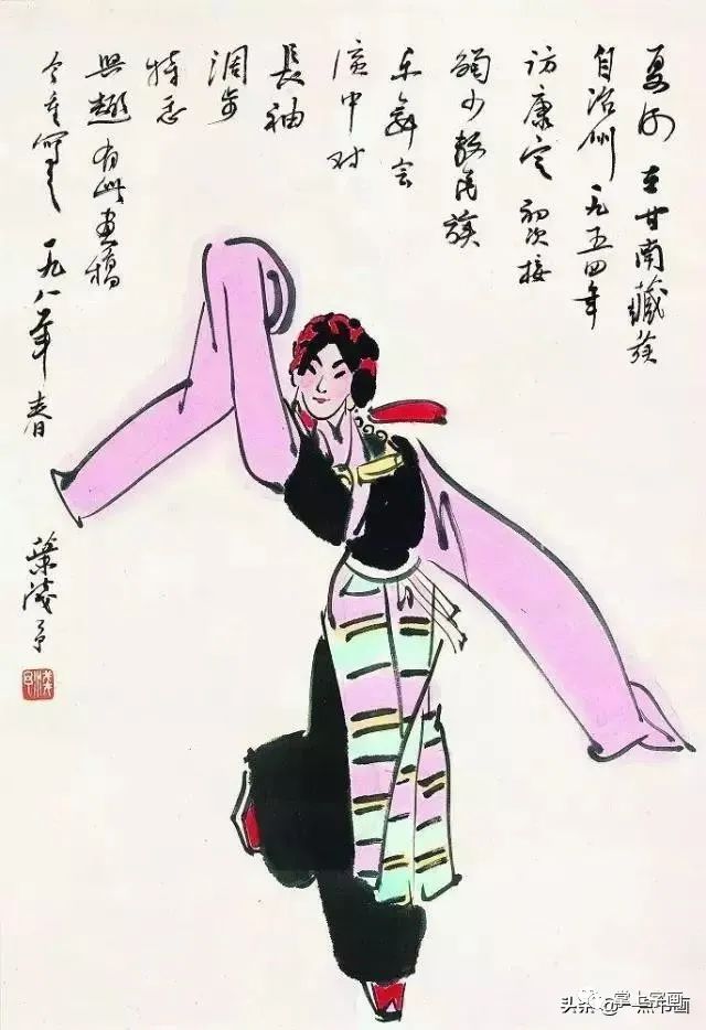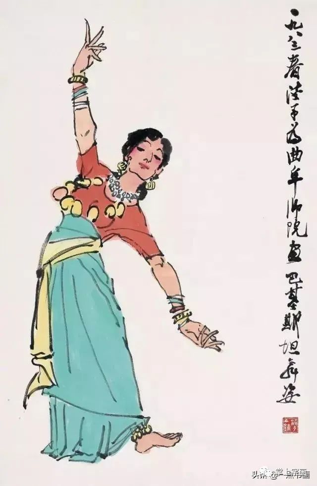 叶浅予采用敦煌绘画的重彩方式表现舞蹈人物,形成了他浓郁热情的舞蹈人物画风。