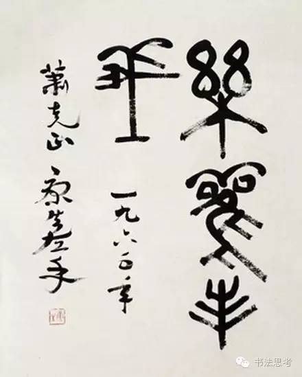如你所见,康生并非仅善章草,他于真、草、隶、篆,样样皆能。古人称赞某人才高,常谓“双手能写梅花篆字”。康生便是如此,左右并进,皆能书画,故常以“康生左手” 落款。如下题“康生左手”: