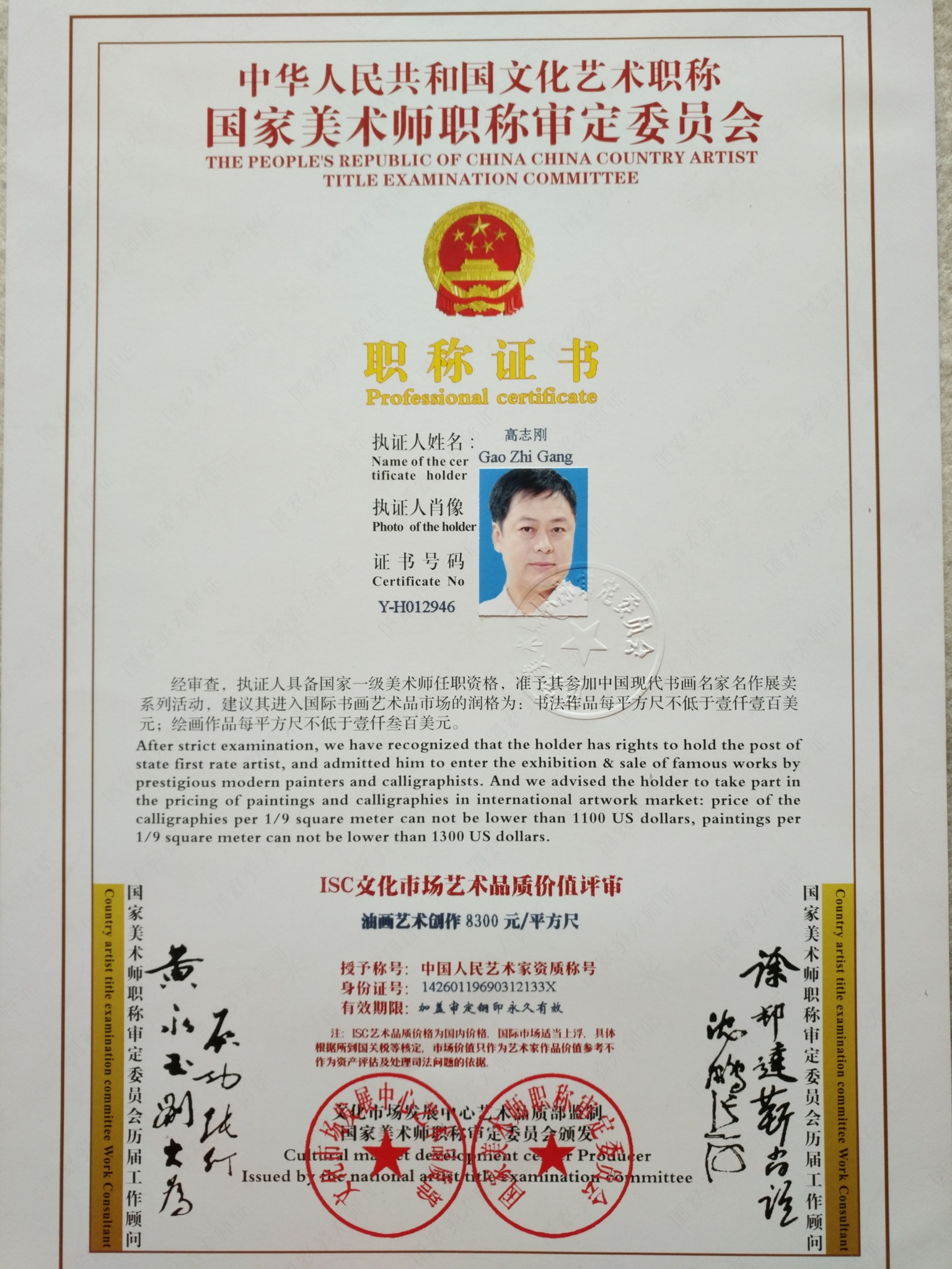 现为:国家一级美术师、山西省美术家协会会员、人民文艺家协会秘书长、中国职业书画家协会理事、临汾市美术家协会会员、临汾市书法家协会会员、中国振鸣书画院理事。