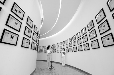 手机直播已经成为网络创作和传播的重要形式。图为5月17日,工作人员在河北省邯郸北科自然博物馆珍稀蝴蝶标本展区直播。新华社发(郝群英摄)