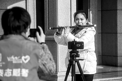 用手机拍摄文艺表演短视频。新华社记者 徐昱摄