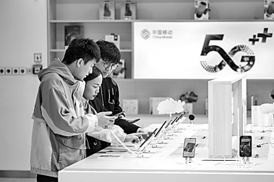 手机的技术含量愈来愈高,创作功能愈来愈强大。图为消费者体验5G手机。新华社记者 沈伯韩摄