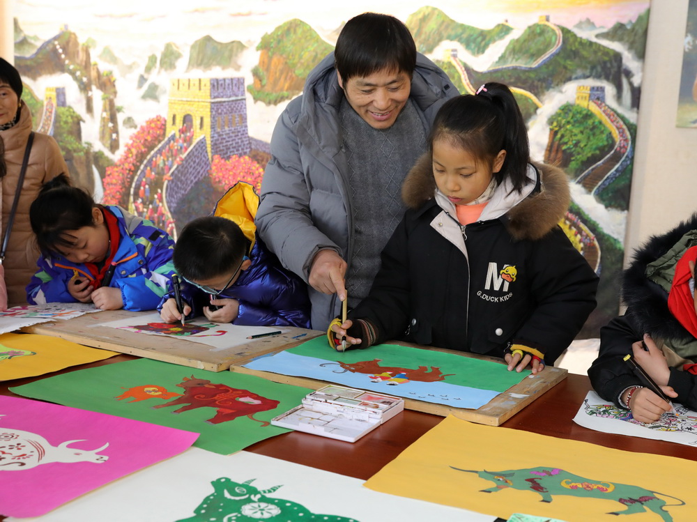 原标题:浙江绍兴:感受农民画 学画生肖牛