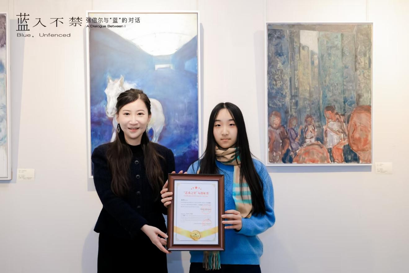 中国民族文化艺术基金会美育文化发展专项基金代表李苒然给张倍尔颁发“艺术之星”证书