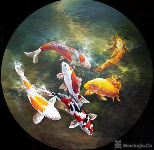 参展比利时艺术家吉赛尔·瓦卡(Gisele Vacca)创作的“锦鲤图”。中新网发 布鲁塞尔中国文化中心供图