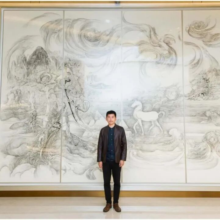 2017受邀为澳门米高梅地标做大型水墨创作
